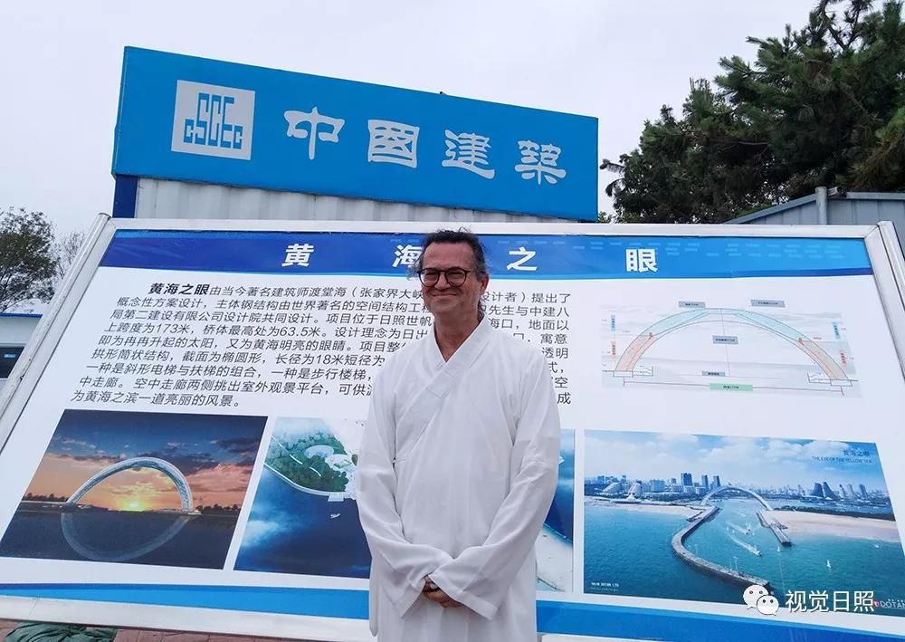 “黃海之眼”項目位于日照世帆賽基地出???,由著名建筑師、城市設計師渡堂海(張家界大峽谷玻璃橋設計者)提出概念性方案設計,著名空間結(jié)構(gòu)工程師川口衛(wèi)與中建八局第二建設有限公司設計院共同設計主體鋼結(jié)構(gòu),設計理念為“日出之城、黃海入口”,寓意即為“冉冉升起的太陽”,又為“黃海明亮的眼睛”。