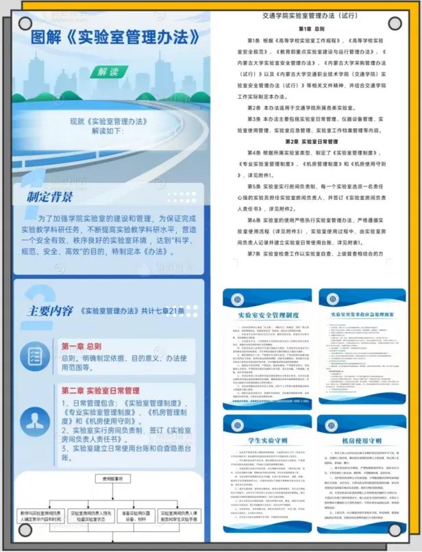 學(xué)院實(shí)驗(yàn)室管理中心始終堅(jiān)持“安全第一、預(yù)防為主”的原則,深入貫徹“以人為本、安全第一、預(yù)防為主、綜合治理”的方針,建立健全的交通學(xué)院實(shí)驗(yàn)室三級(jí)管理制度,制定明確的實(shí)驗(yàn)室安全管理制度,為實(shí)驗(yàn)室統(tǒng)一配備《實(shí)驗(yàn)室使用記錄》、《實(shí)驗(yàn)室儀器使用記錄》和《實(shí)驗(yàn)室安全隱患自查臺(tái)賬》。推行實(shí)驗(yàn)室安全雙準(zhǔn)入制度。對(duì)交通運(yùn)輸教學(xué)科研實(shí)驗(yàn)平臺(tái)、機(jī)械類教學(xué)科研實(shí)驗(yàn)平臺(tái)和土木類教學(xué)科研三大實(shí)驗(yàn)平臺(tái)41個(gè)科研、教學(xué)實(shí)驗(yàn)室進(jìn)行實(shí)驗(yàn)室安全分級(jí)、分類管理。設(shè)立安全員巡視制度,及時(shí)發(fā)現(xiàn)和消除潛在的安全隱患,確保實(shí)驗(yàn)室始終處于安全可控狀態(tài)。